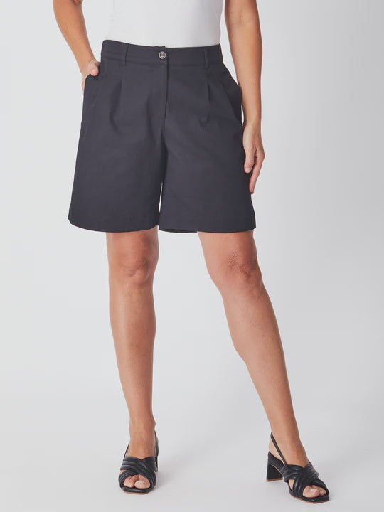 Elevate your summer style with our Button Up Short! Made from stretch cotton, it features a flattering mid length and zip fly front for a comfortable fit at the true waist. Convenient pleat pockets add a stylish touch. Upgrade your wardrobe and embrace the season in this must-have piece.