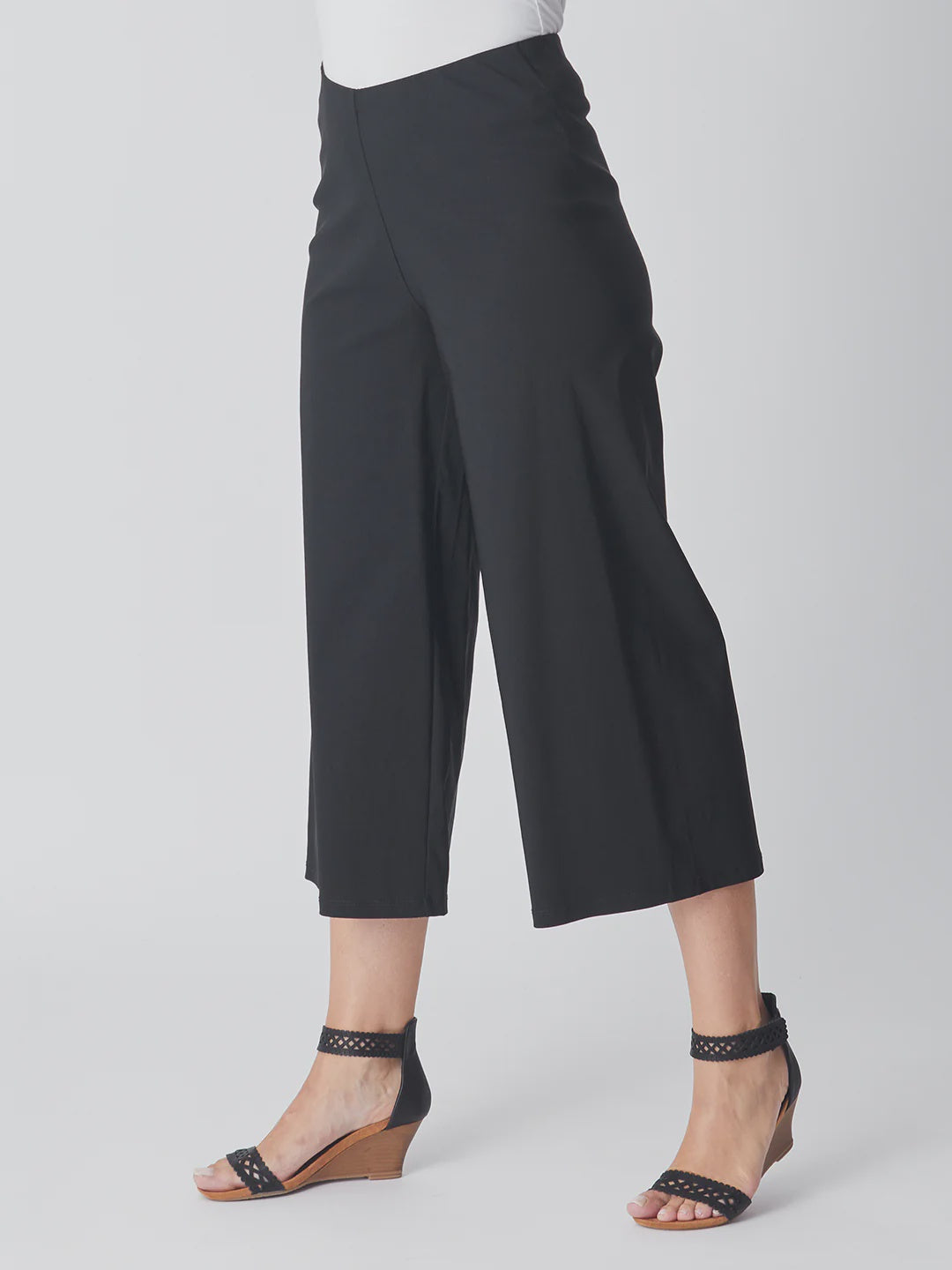 The Bengaline Culotte Pant in black is your go-to-pant, perfect for dressing up or down. A sophisticated silhouette, yet a comfortable pull-on pant for effortless ease.