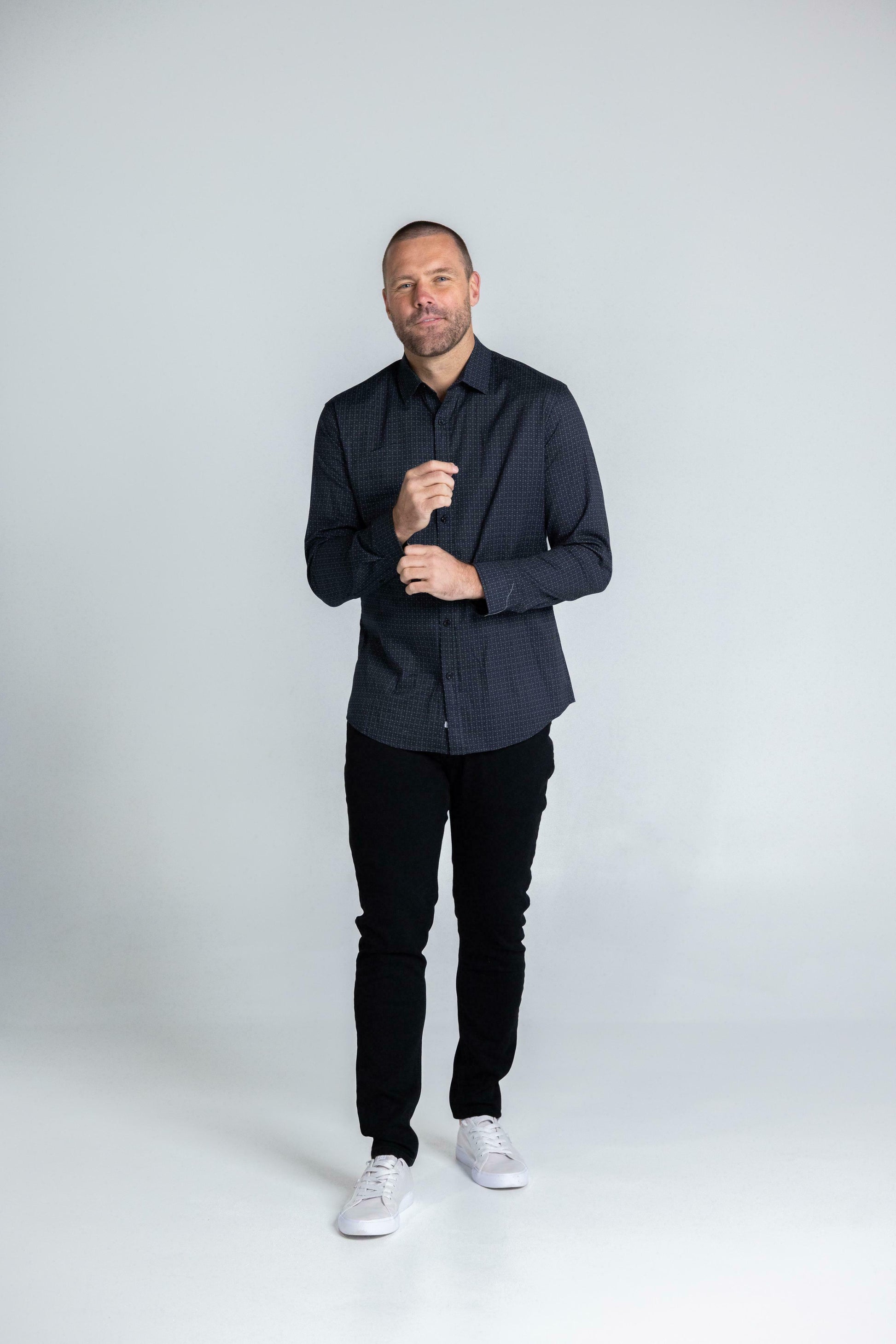 GEO PRINTED COTTON STRETCH LONG-SLEEVE SHIRT