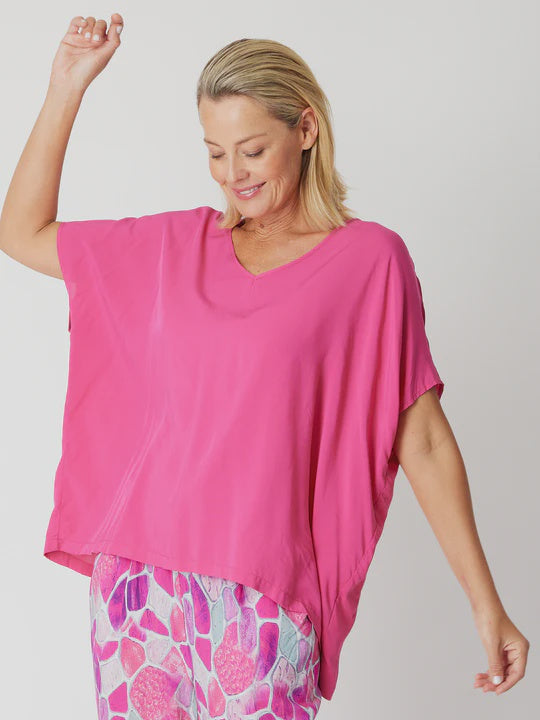 Introducing the Pebbles Core Rayon V Top. Stay cool and stylish on hot summer days with this floaty and relaxed top. Made of soft and comfortable rayon, it will be your go-to piece. And the best part? If you're in between sizes, you can go down for a perfect fit!